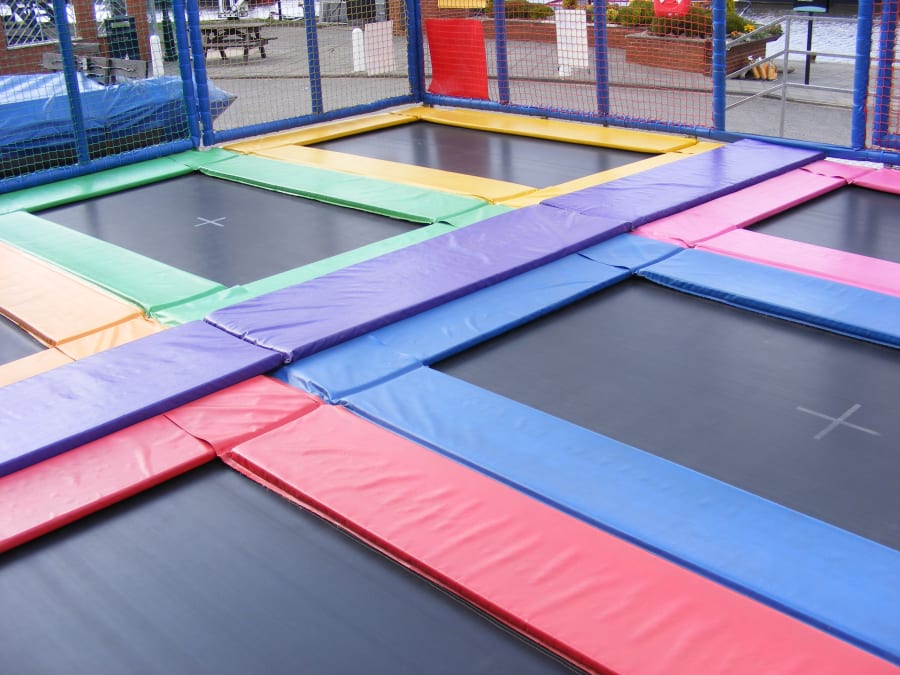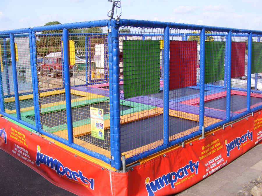 Our fully enclosed six bed trampoline is a compact, well-engineered, towable fun machine that folds out on a preformed base to form a secure and weatherproof multi-bed system loved by many people aged 3 to 63!
