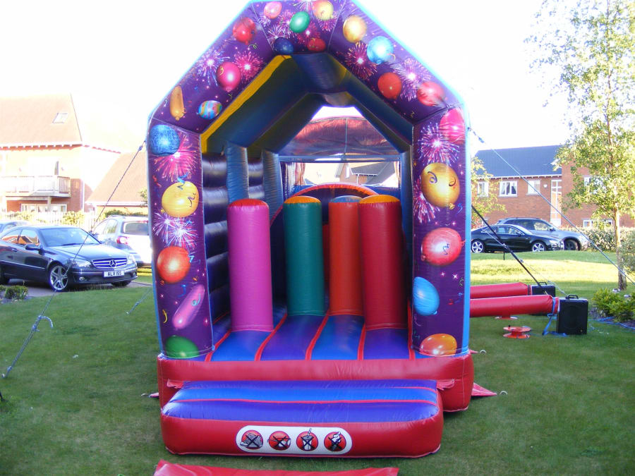 This bouncy castle comes complete with fitted rain cover, pegs/sand bags, blower and matting.