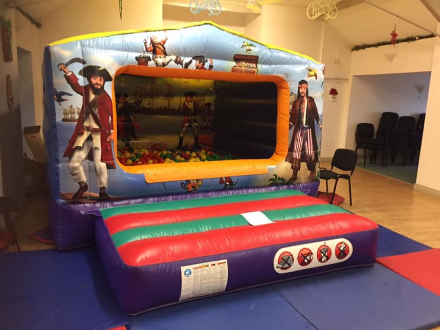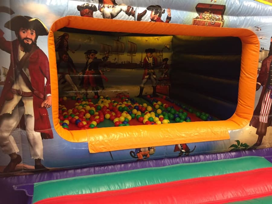 Ahoy, young adventurers! Embark on a thrilling journey across the seven seas from the comfort of your garden with our 11 x 14ft Pirate Box Castle with optional Ball Pool. This delightful bouncy castle unit has been designed to spark imagination, promote active play, and provide endless entertainment for children. Let your kids dive into a world of fun and excitement, where they can explore their own pirate fortress and plunge into a sea of colourful balls.